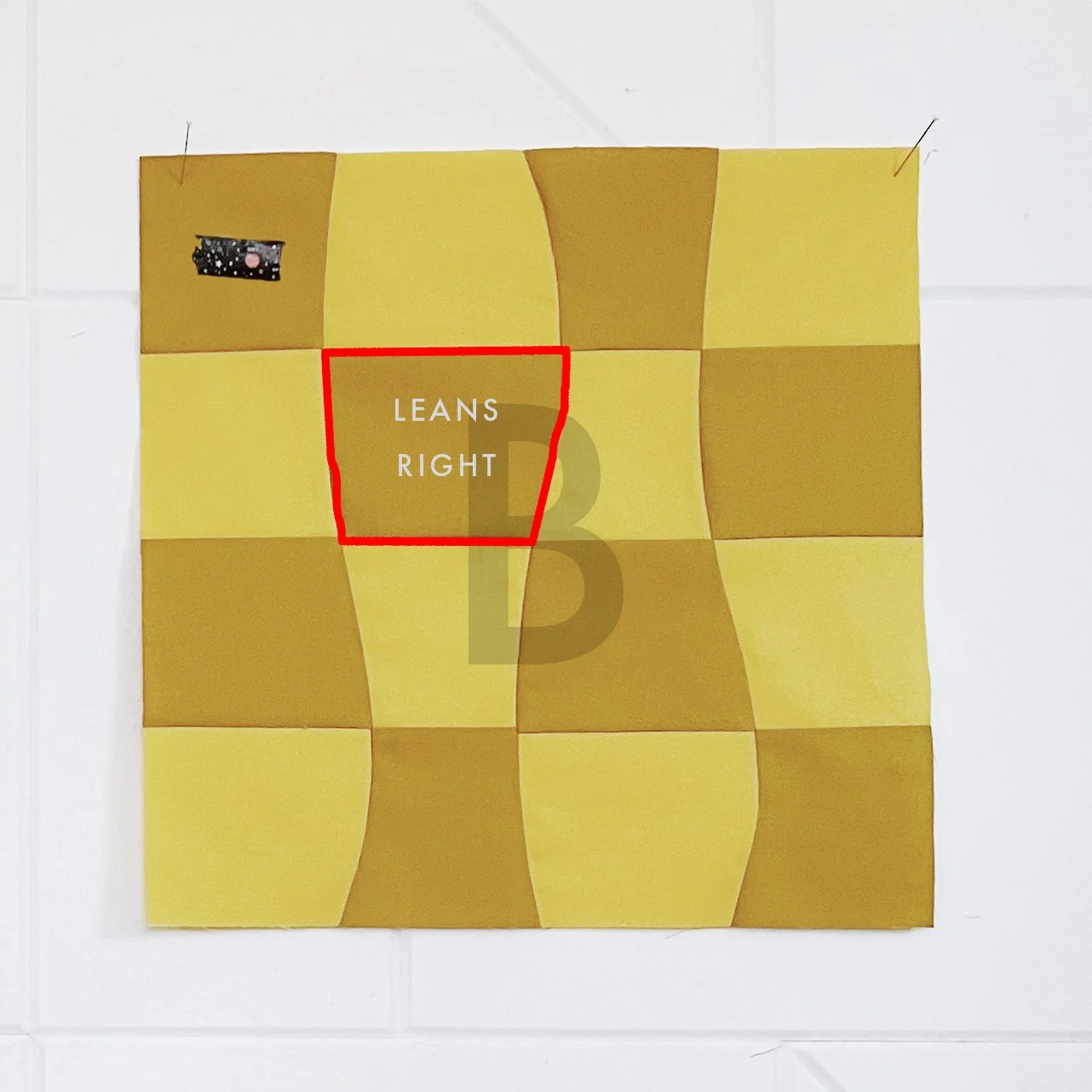 When Block B is right side up, the upper center Fabric 1 piece kind of leans to the right. When it’s upside down, the upper center Fabric 1 piece kind of leans to the left.